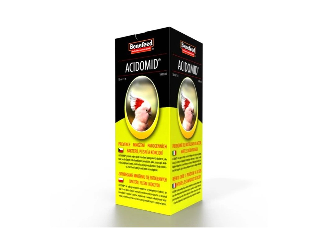 ACIDOMID® je špičkový výrobok modernej koncepcie pôsobiaci nielen proti rozmnožovaniu patogénnych baktérií, ale veľmi dobre tlmí rozvoj a rozmnožovanie vnútrobunkových parazitov ako napr. kokcídie. ACIDOMID® však nie je liečivo, neobsahuje ani kokcidiostatiká a tak nezanecháva v organizme rezíduá. A tiež nemá ochrannú dobu.