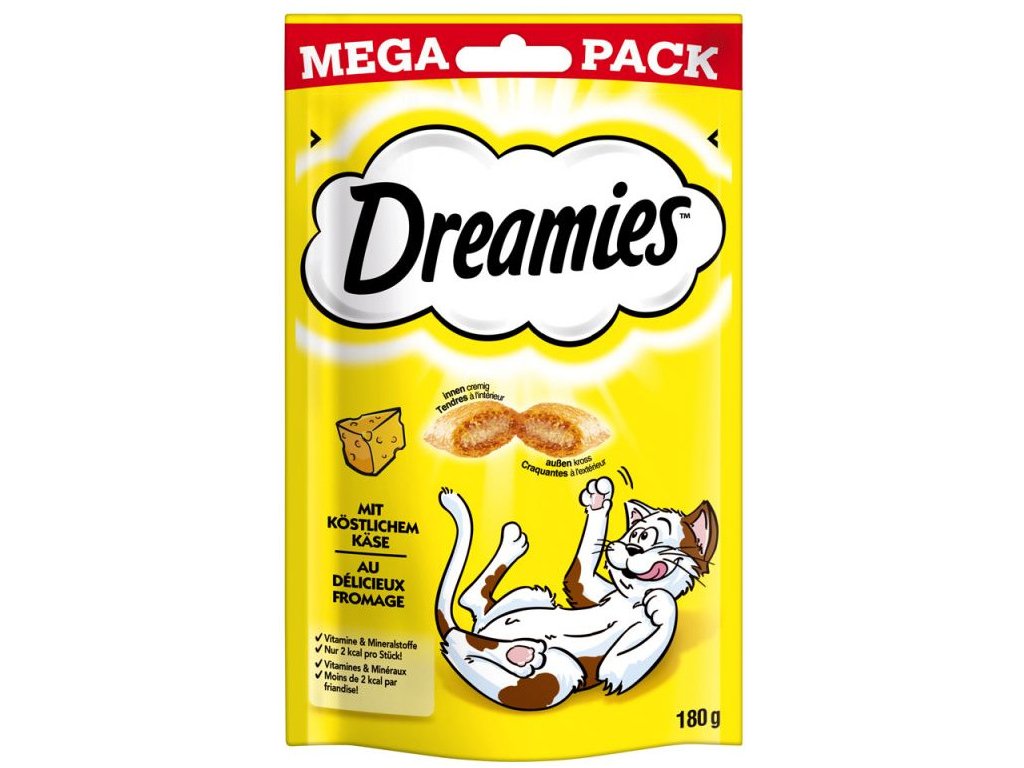 Dreamies Cheese - chutné syrové vankúšiky pre mačky. Lahodné maškrty pre mačky s jedinečnou príchuťou a krémovou náplňou. Zmes v chrumkavom obale je presne to pravé pre všetky mačacie maškrtníky. Praktické uzatvárateľné balenie zachová obsah vždy čerstvý. Chrumkavá časť má dentálnu funkciu, lahodný krém zase poteší maškrtný jazýček. Maškrty Dreamies sú vhodné pre mačky akéhokoľvek veku. Každý kúsok obsahuje menej ako dve kalórie.