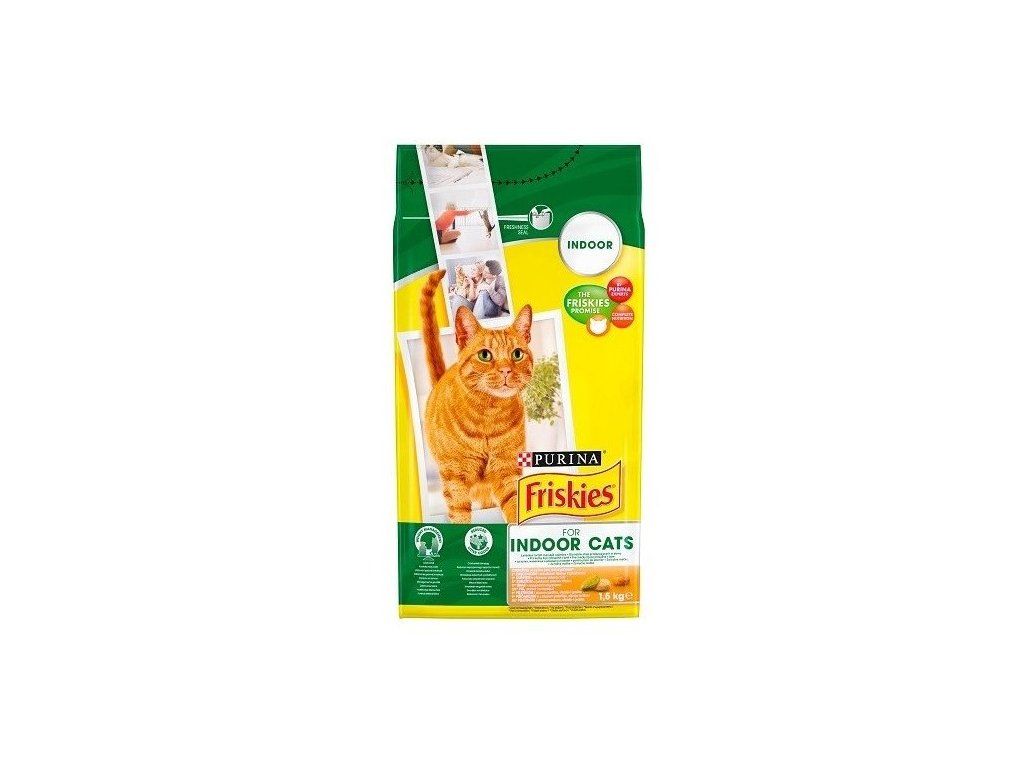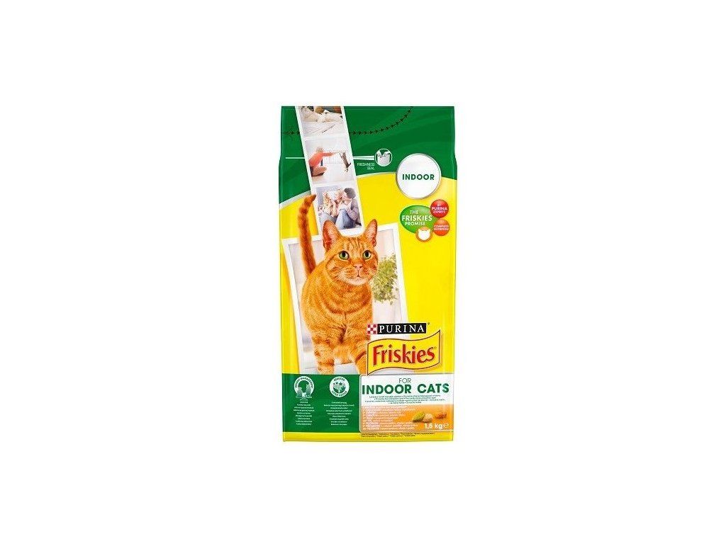 Purina Friskies Indoor Cats je kompletné a vyvážené krmivo, a to vďaka kombinácii ingrediencií vrátane kuraťa, zeleniny, vitamínov a minerálnych látok. Friskies predstavuje všetko, čo Vaša mačka potrebuje k výžive, aby zostala zdravá a šťastná. Mačky chované v byte majú obmedzený kontakt s prírodou, a preto im chýbajú niektoré prínosy z vonkajšieho prostredia. Tiež zápach pri vyprázdňovaní môže byť problémom pri zdieľaní domácnosti s mačkami. To je dôvod, prečo sme v spolupráci so špecialistami na výživu vyvinuli receptúru Friskies Indoor Cats, ktorá spĺňa potreby týchto mačiek. 100 kompletné a vyvážené krmivo Friskies pre mačky chované v byte priamo nahrádza to, čo mačkám chýba z pobytu v prírode, vrátane zelenej trávy, na ktoré si mačky pochutnávajú. Vaša mačka vie, že chutí skvele, a Vy viete, že jej dávate všetky bielkoviny, vitamíny a minerálne látky, ktoré jej pomáhajú zostať šťastnou, plnou vitality a žiť svoj život naplno! Kŕmny návod: Dospelým mačkám do hmotnosti 3 kg podávajte 55 g, mačkám s hmotnosťou 3 až 4 kg 75 g, mačkám s hmotnosťou 4 až 5 kg 95 g denne. Zloženie: obilniny, bielkovinové extrakty rastlinného pôvodu, mäso a vedľajšie výrobky živočíšneho pôvodu (min. 4 kuracie mäso), oleje a tuky, zelenina, minerálne látky, kvasnice.