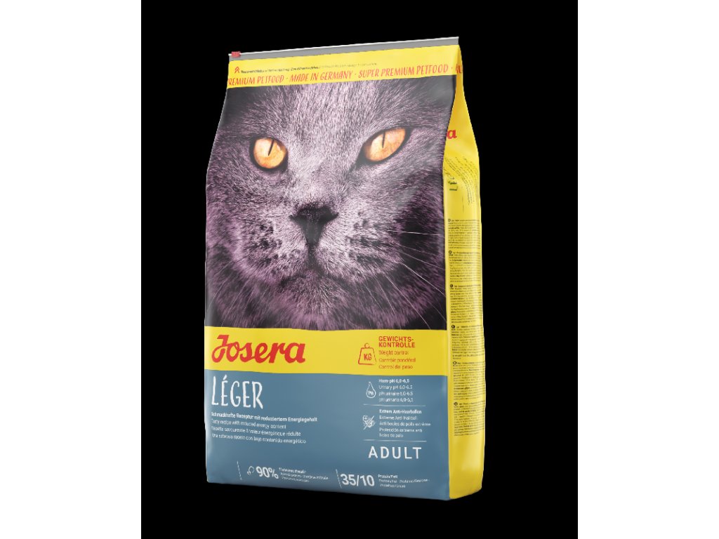 Josera Léger so zníženým obsahom kalórií a zvýšeným obsahom vlákniny je tou správnou výživou pre menej aktívne mačky alebo mačky, ktoré sú náchylné k nadváhe, napr. po kastrácii.